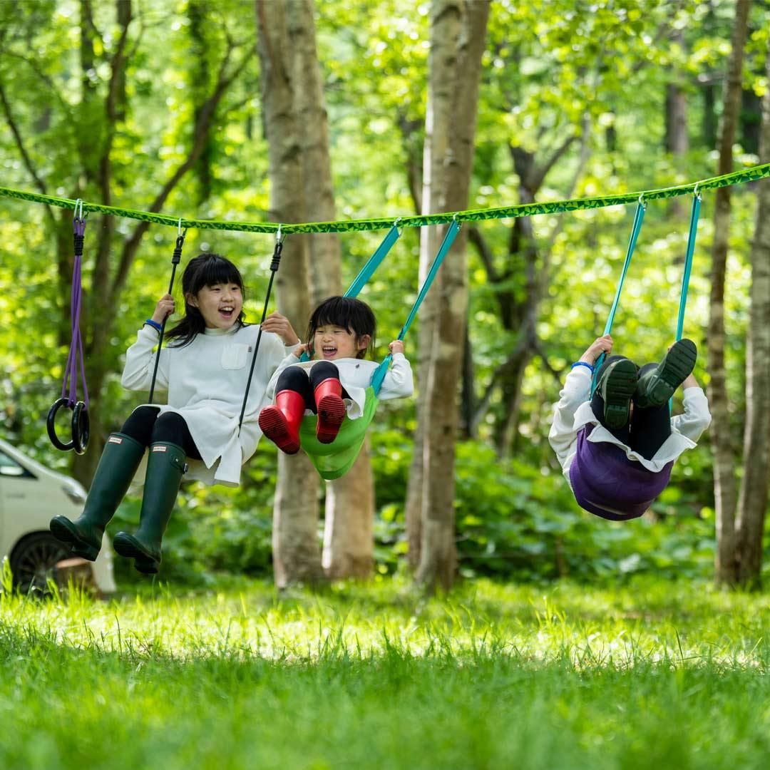 ツリースイング、スラックライン、ニンジャライン。